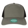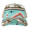 - Heather Tan/Black with mesh back is 55/35/10 acrylic/polyester/wool