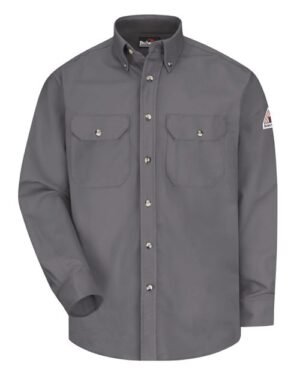 - Two chest pockets with button flap closures and sewn-in pencil stall