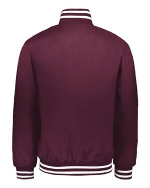 - Ribbed-trim collar, cuffs and bottom hem