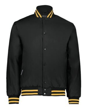 • Ribbed-trim collar, cuffs and bottom hem