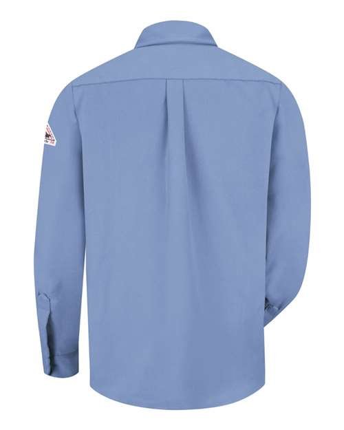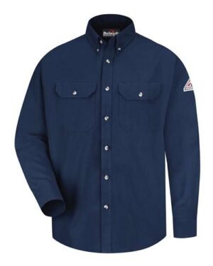 - Two chest pockets with button flap closures and sewn in pencil stall