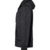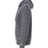 - Raw-edge hood opening, pocket seams, cuffs, waistband, zipper placket and side seams