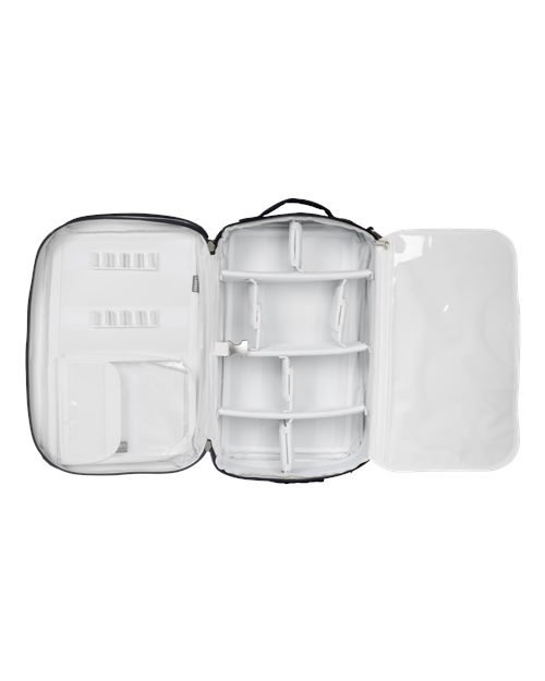 - Zippered internal compartments with clear view pockets