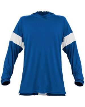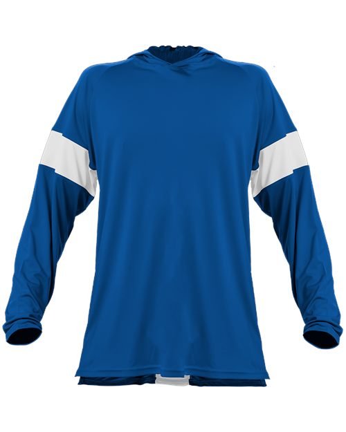 - Body color cross over neck hoodie with 4" contrast-color inserts
