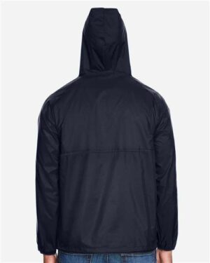 - Lightweight packable hooded pullover with quarter-zip entry