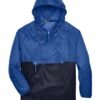- Lightweight packable hooded pullover with quarter-zip entry