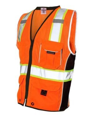 - Left chest heavy duty gusseted radio/utility pocket with reflective piping
