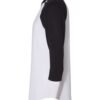 - Contrast-color 1×1 rib collar and raglan sleeves