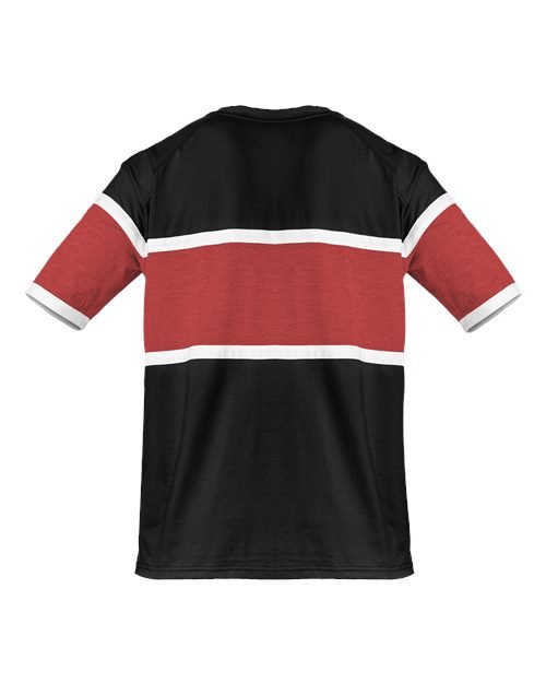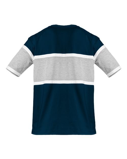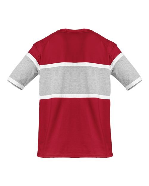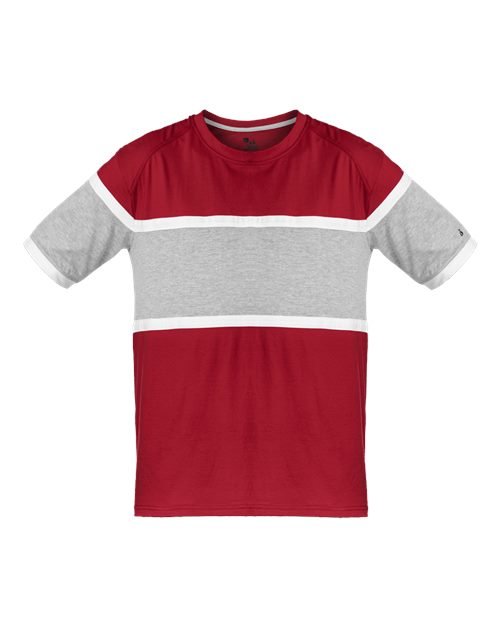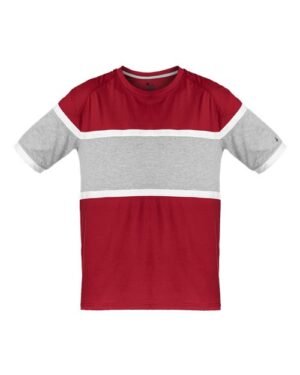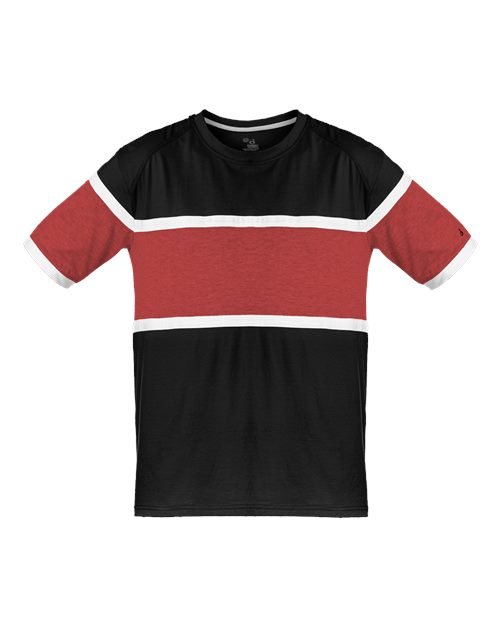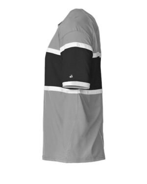 - Ringer sleeve hem with Badger heat seal logo on left sleeve