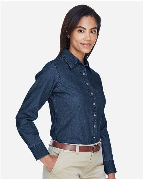 - Signature horn-style buttons with Harriton logo and contrast thread