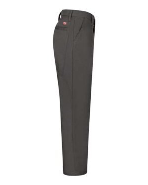 - Two slack-style front pockets, two set-in hip pockets, left pocket has button closure
