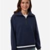 - Quarter-zip with wide fold-down collar