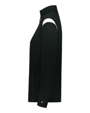 - Badger heat seal logo on left sleeve