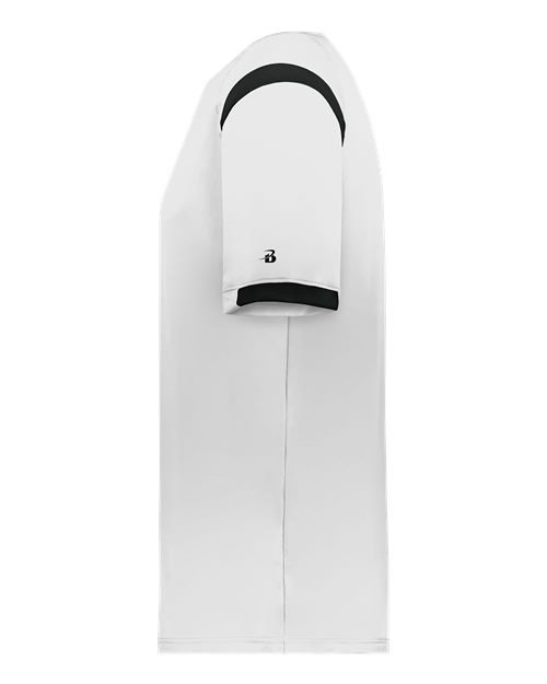 - Badger heat seal logo on left sleeve